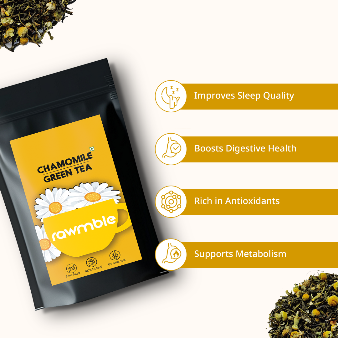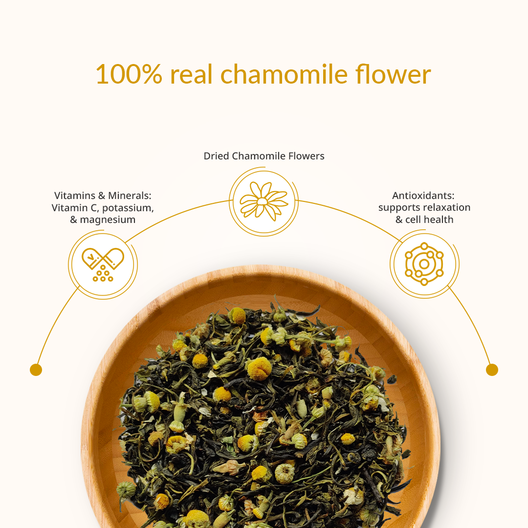 Chamomile green tea | Stress Relief green tea known for its calming properties, helping to reduce stress and anxiety.