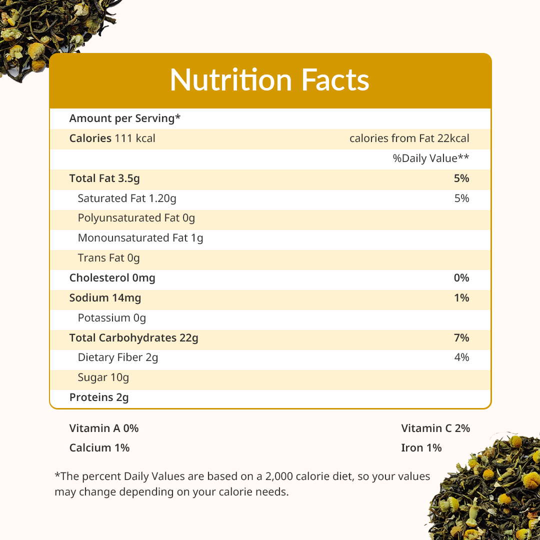 A perfect blend of soothing chamomile flowers and revitalizing green tea leaves. Designed to melt away stress and bring restful sleep, Chamomile is nature’s lullaby in a teacup.