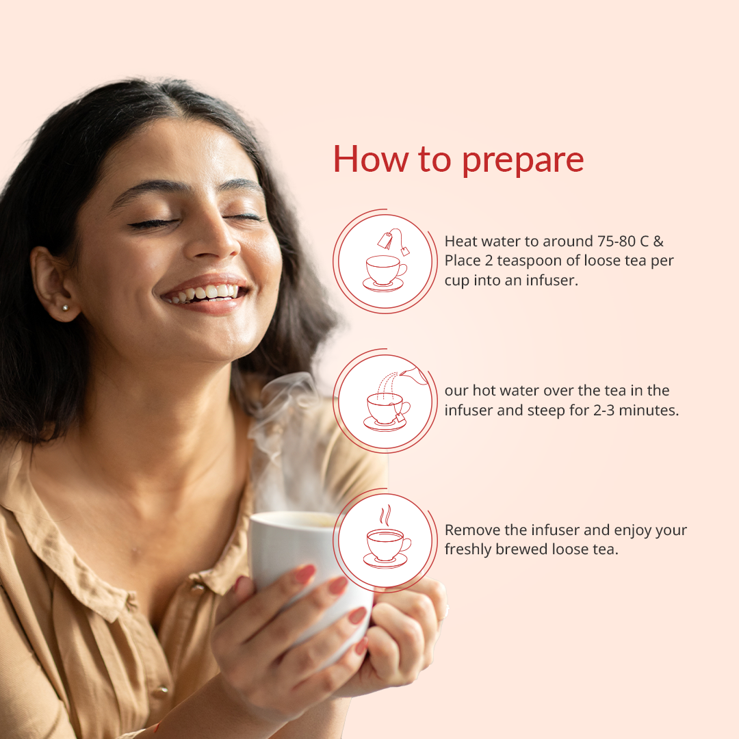 Step 2: Steep 1 tsp leaves in hot water for 2-3 minutes